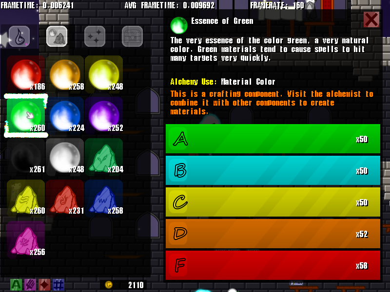 I wanted to retain the feeling of alchemy (taking apart materials, and recombining them to make something else) while still keeping it an appealing option. Under the old system, you would combine two materials to derive a color, and then derive an element from a third material. Even from an in-universe explanation, it was incredibly wasteful and confusing. Where did the "type" part of the color pieces go? What about the "color" of the type piece? Do they just get destroyed?